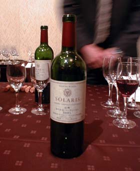 | マンズワイン株式会社小諸ワイナリー 「ソラリス信州カベルネソーヴィニヨン2001年」 うーーん、どうしてもマンズワインにくるとこれを飲んでしまうなあ。長年のお気に入りです。何しろ小売価格3600円ですから。うまくて当たりまえともいえます。 そういえばいつの間にか「小諸工場」が「小諸ワイナリー」になってますね。 |   |